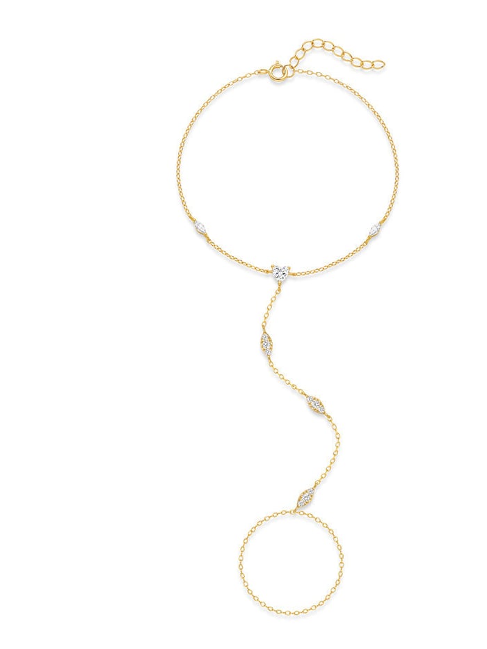 Delicate, dazzling, and effortlessly chic — the Aurora Hand Chain Bracelet drapes across your hand like strands of golden light. Each dainty zircon stone catches the glow beautifully, creating a fluid, elegant sparkle with every movement.