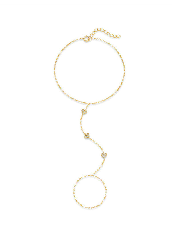 A whisper of love and light — the Amour Hand Chain drapes delicately across your hand, adorned with sparkling heart-shaped zircon stones that capture every glimmer of affection.